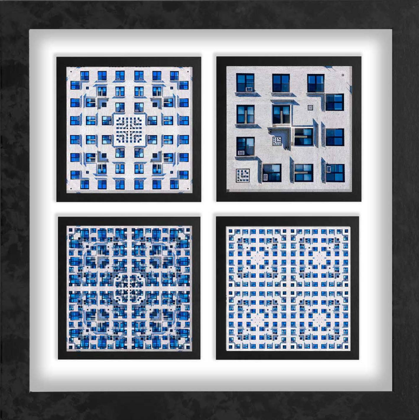 Each piece originates from photographs of urban architecture — glimpses, details, and sections of buildings that define our everyday landscape.